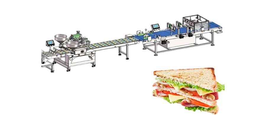 The sandwich production line adopts a modular design centered on the following core machines, which are connected in sequence according to the sandwich production process to form a continuous and efficient processing line. The specific components and their functions are as follows: